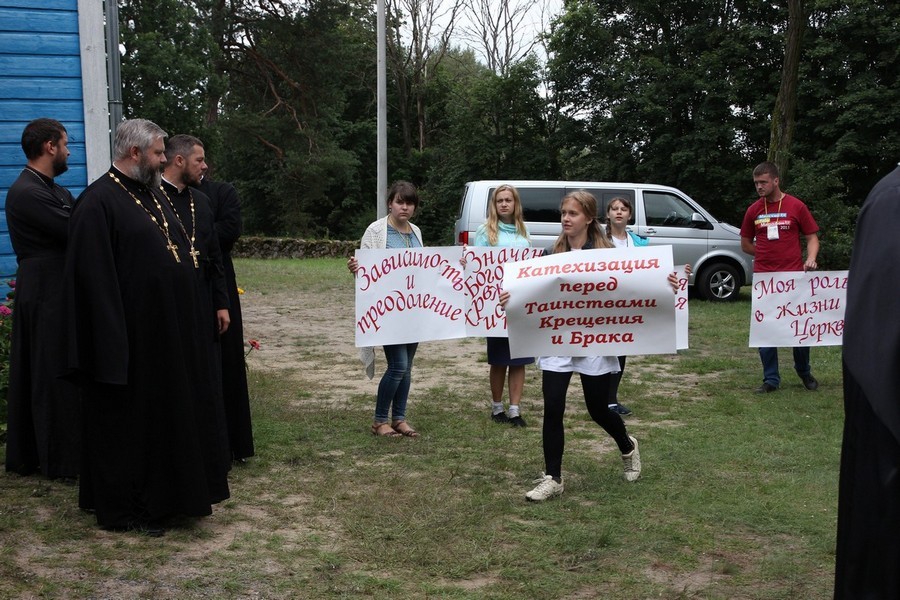 9-12 августа в селе Вежное Пружанского района вблизи Николаевского скита по уже сложившейся традиции прошел VIX Молодежный международный семинар-слет "Единство". В слете участвовали более 450 представителей православных молодежных братств из Брестской епархии, а также из других епархий Беларуси (Минской, Борисовской, Гродненской), Украины (Владимиро-Волынская) и Польши (Люблинская). В первый день участники молились за Всенощным бдением и ночной Божественной литургией. Богослужения возглавил Епископ Брестский и Кобринский Иоанн. Во второй день слета на площадке возле церкви скита состоялась встреча участников семинара-слета с архипастырем. Беседа проходила в форме "вопрос-ответ". В разговоре были затронуты злободневные темы, волнующие современную молодежь, касающиеся, в том числе, отношения к церковной жизни и Таинствам Церкви, создания и построения крепких семейных отношений и др. После встречи с архиереем семинар продолжился работой в секциях по следующим направлениям: • "Значение богослужения в жизни молодого христианина" — игумен Игнатий (Лукович), кандидат богословия, председатель паломнического отдела Брестской епархии. • "Брестская церковная уния 1596 г.: правда и ложь в контексте истории. 420 –лет со дня подписания" — протоиерей Михаил Носко, кандидат богословия, благочинный церквей Пружанского округа. • "Катехизация в форме собеседований перед Таинствами Крещения и Брака: за и против" (открытая дискуссия) — протоиерей Сергий Петрусевич, кандидат богословия, благочинный церквей Жабинковского округа; иерей Михаил Мандрик, кандидат богословия, г. Брест. • "Зависимость и преодоление" — протоиерей Евгений Лихота, председатель Отдела образования и катехизации Брестской епархии. • "Влияние неокультов и тоталитарных сект на молодежь" — иерей Павел Юрченя, магистр богословия, председатель миссионерского отдела Брестской епархии. • "Моя роль в жизни Церкви" — совещание для руководителей молодежных братств и приходских активистов" — Романович П.П., кандидат богословия, председатель отдела по работе с молодежью Брестской епархии. В последующие дни слета ребята принимали участие в мастер-классах, конкурсах и братских турнирах по футболу волейболу. В рамках слета состоялась также презентация деятельности епархиального молодежного движения в защиту традиционных ценностей "Настоящая жизнь" (руководитель - Евгения Морозова) и одноименной электронной газеты. Во время слета для очередного выпуска газеты работали братчики-волонтеры, которые освещали проводимые мероприятия. По итогам их творческой деятельности будут оформлены материалы в ближайшем номере газеты. Вечерами на установленной сцене звучали концертные номера коллективов, исполняющих музыку различных стилевых направлений. В их числе проекты: LONG LIGHT WAY, Paracletos, Анастасия Крупко, рэп-исполнитель Мистик (Максим Исаев), Андрей Семенюк, Mike Rose (Дмитрий Мащук), рэп-исполнитель Прокси (Артур Ховрин), Dj Mike Finder (Михаил Дмитрук), Анастасия Сернова, Максим Принцепс (Янкевич), Ангелина Пиппер. В ходе семинара-слета проходил конкурс – братства-участники "зарабатывали" себе баллы, выполняя по очереди работы в трапезной, по уборке территории, подготовке музыкального номера-визитки и в других послушаниях. Каждый из ребят достойно трудился для подтверждения "доброго имени" своего бра