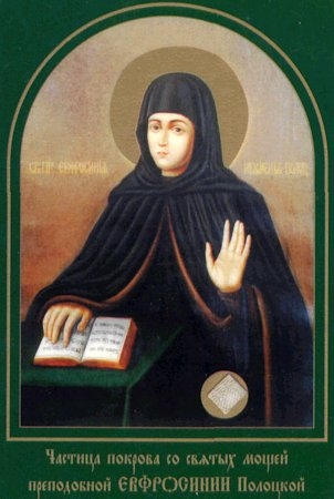 Преподобная Евфросиния первая из русских жен явила прекрасный лик духовной радости, и благодарные жители Полоцка не случайно написали на одной из икон монастыря, основанного преподобной: "Гряди, радосте наша — преподобная Евфросиния".