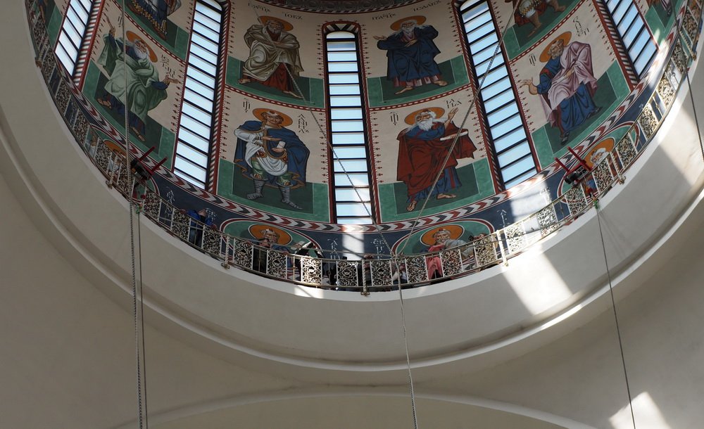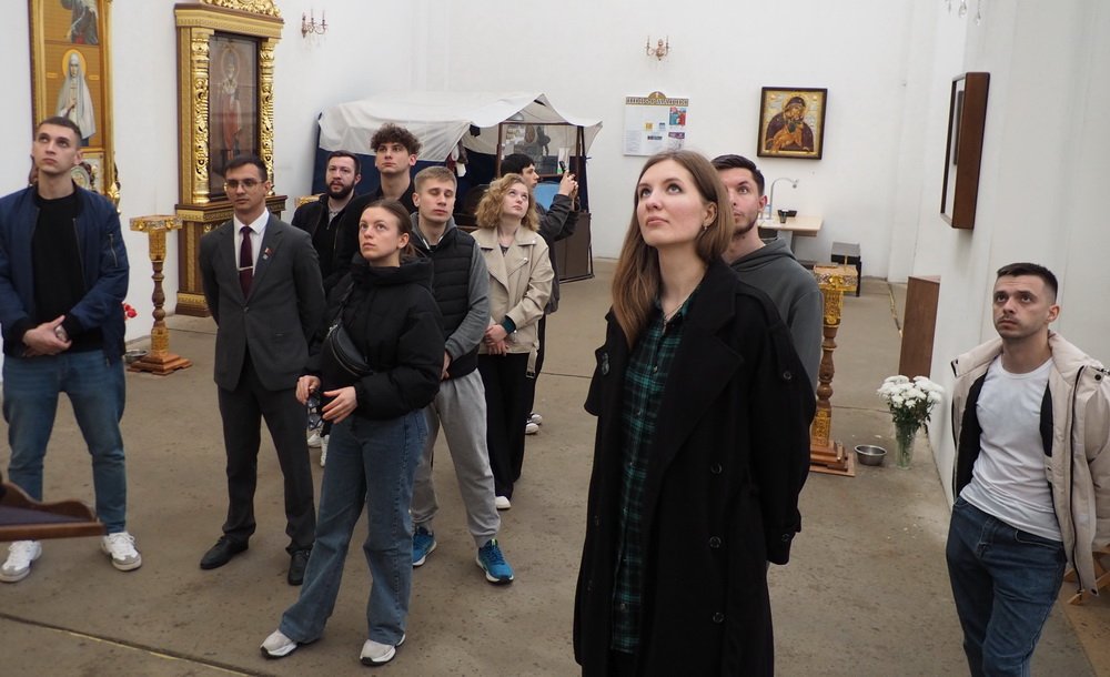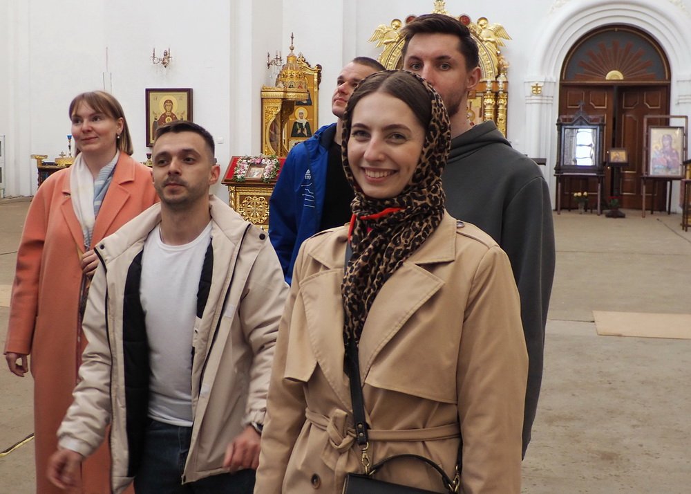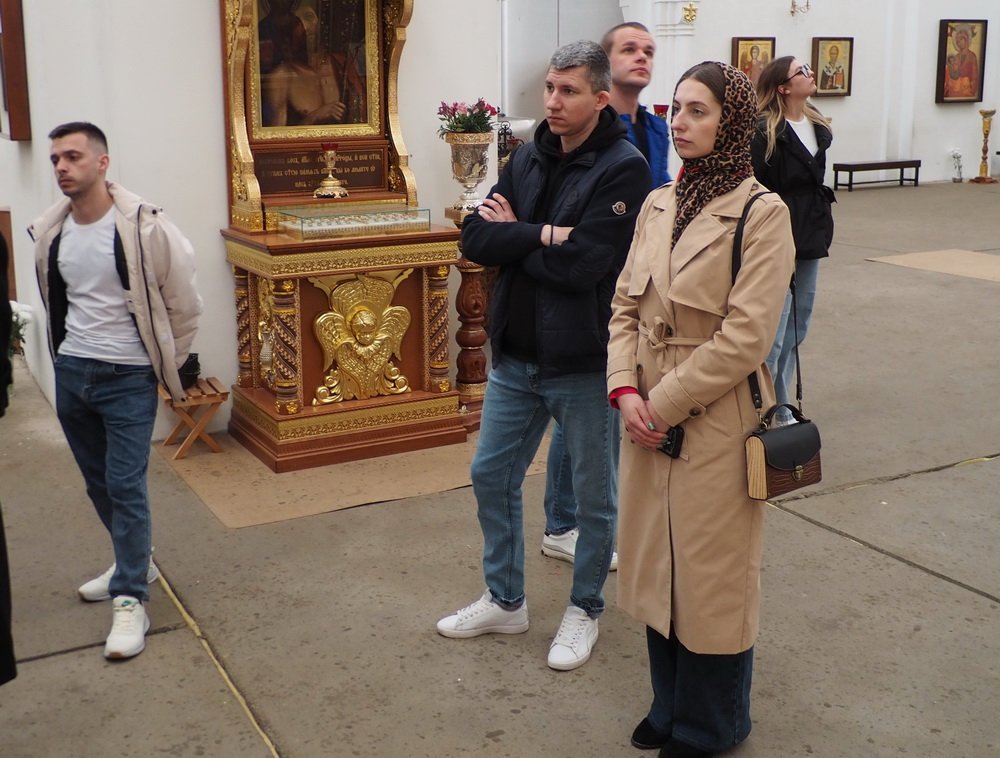 В ходе визита в приход группа заинтересовалась храмовым комплексом. В ответ на вопросы гостей, сотрудники прихода провели обзорную экскурсию. Посетили храм иконы "Всех скорбящих Радость", вблизи увидели росписи купольного барабана.