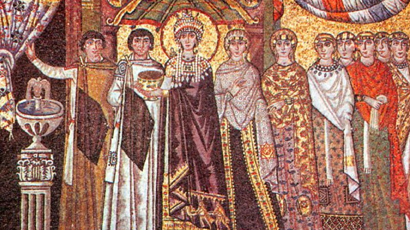 Правоверный царь Иустиниан (Юстиниан) и царица Феодора. Святой Иустиниан был одним из самых великих императоров Ромейского царства (Византии), великим защитником и ревнителем Православной веры, который возвёл множество храмов и написал целый ряд церковных сочинений.