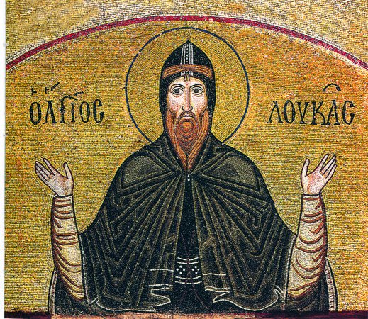 Стекавшиеся туда во множестве люди нарушали его безмолвие, и преподобный Лука с благословения старца Феофилакта со своим учеником удалился в еще более пустынное место Калавие, откуда через три года из-за нашествия арабов переселился на пустынный и безводный остров Ампиль. Последним местом его подвигов стал Стирий (Сотерие). Здесь к преподобному собралась братия, и возник небольшой монастырь, церковь которого была освящена во имя святой великомученицы Варвары. Пребывая в обители, преподобный творил многие чудеса, исцеляя болезни душевные и телесные. Предвидя свою кончину, святой затворился в келлии и три месяца готовился к исходу. На вопрос, где его похоронить, преподобный ответил: "Бросьте тело мое на съедение зверям". Когда же братия просила его изменить завещание, он велел похоронить тело на том же месте, где он лежит. Со словами: "В руки Твои, Господи, предаю дух мой!" - преподобный Лука почил о Господе 7 февраля 946 года. Впоследствии на месте его погребения была воздвигнута церковь, а от его святых мощей истекало миро и происходили многие исцеления.