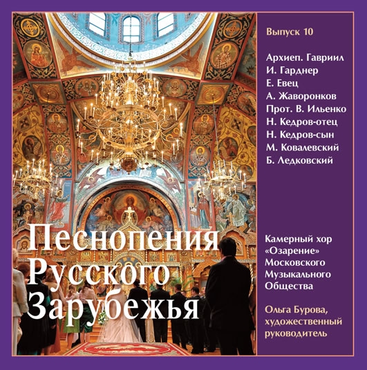 Десятый аудио-диск завершает серийное издание «Песнопения русского зарубежья», представляющее забытое хоровое наследие русской эмиграции. На диске записаны церковные песнопения двадцати трех авторов русского зарубежья. В их числе - известные духовные композиторы Борис Ледковский, Максим Ковалевский, отец и сын Кедровы, авторы духовных песнопений архиепископ Гавриил (Чепур), музыковед Иван Гарднер, протоиерей Виктор Ильенко, парижские регенты Евгений Евец и Александр Жаворонков.