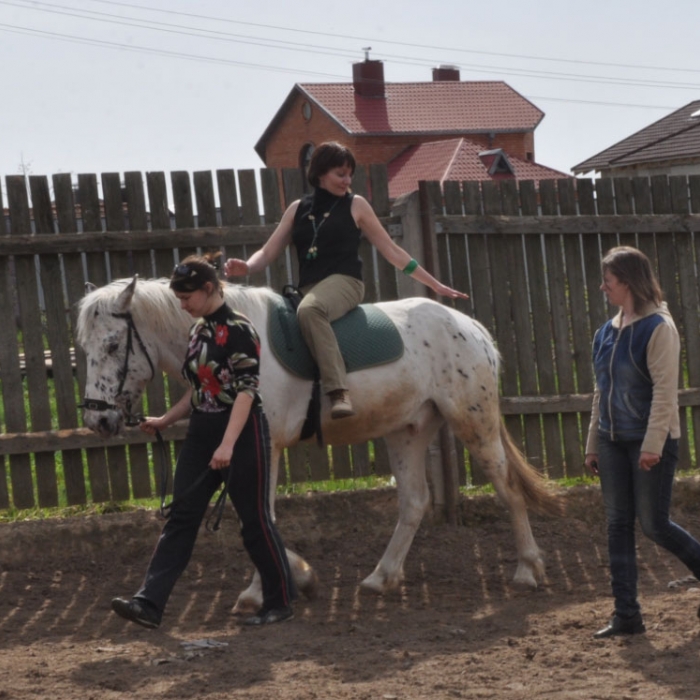 В рамках выездных занятий для учителей-дефектологов организовали и мастер-класс – они смогли поприсутствовать на иппотерапевтическом занятии, понаблюдать за работой инструктора, поведением лошади и реакцией ребёнка. Сидя на лошади, гости смогли и сами почувствовать себя в качестве пациента.