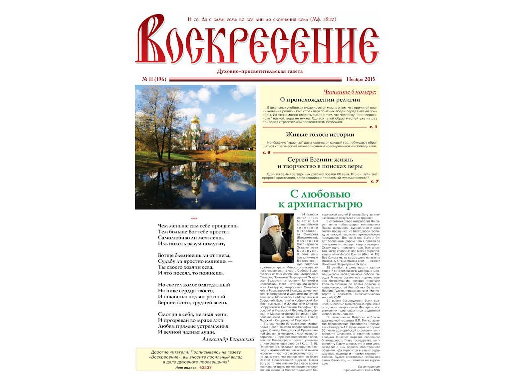 Вышел в свет ноябрьский номер газеты "Воскресение"