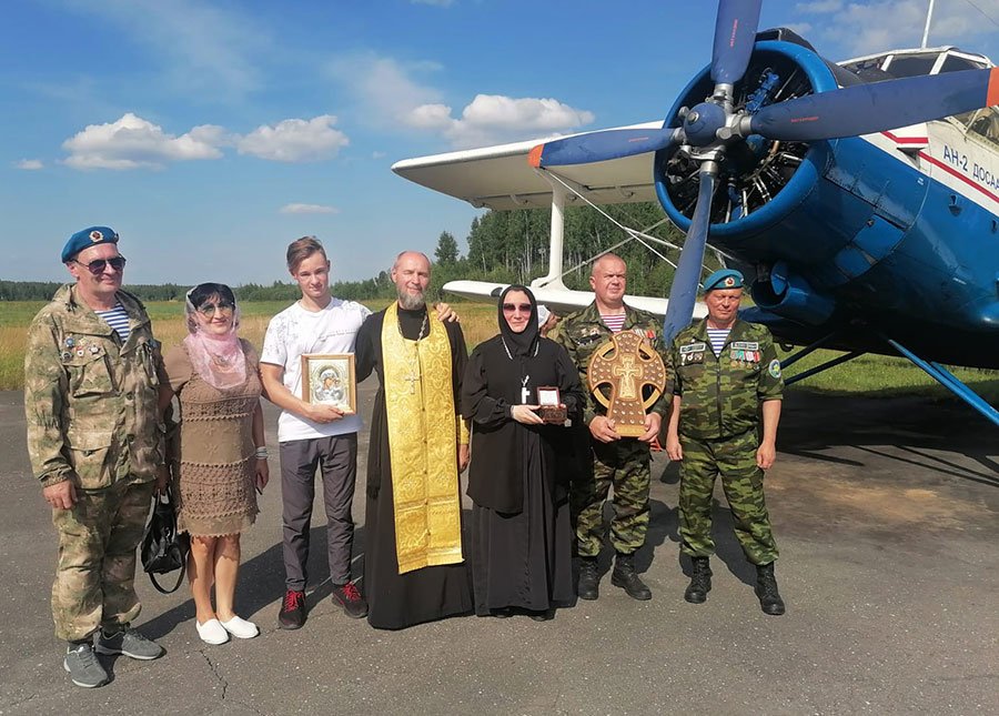 В самолете над городом находились православные святыни: Крест с частицами мощей многих угодников Божиих, образ Пресвятой Богородицы "Казанская" и другие иконы./ sobor.by/ bobreparhiya.by