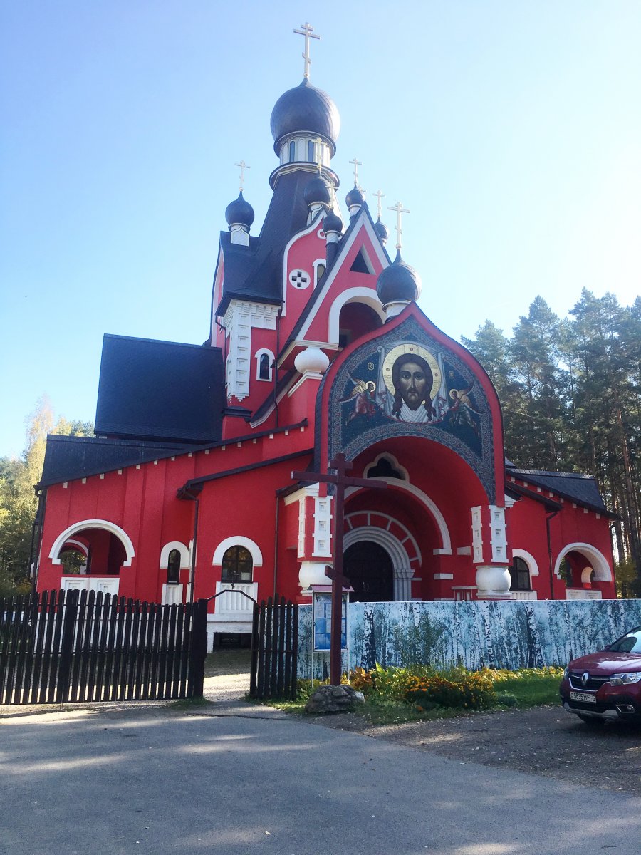 Но всё же храм Вознесения Господня имеет неповторимый архитектурный образ: строение шатрового типа, высотой 38 метров с девятью куполами и крестами, вмещает до 500 прихожан. Красные стены, украшенные белым орнаментом, на фоне зелёного леса, возвещают Пасхальную радость и апостольскую проповедь о всеобщем воскресении. При храме уже существует сестричество, названное в честь Иулиании, княжны Ольшанской. Сестричество взяло на себя послушание заботится о престарелых и болящих людях. По благословению Высокопреосвященнейшего Филарета, митрополита Минского и Слуцкого, Патриаршего Экзарха всея Беларуси, уже с 2013 года в недостроенном храме Вознесения Господня совершаются богослужения./ sobor.by/