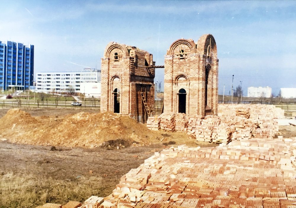 | "История прихода в датах". 1994: На церковной территории прихода началось строительство звонницы, здания воскресной школы и Радосте-Скорбященского собора, продолжилось строительство крестильной церкви. "Вот тут, ближе к улице Притыцкого, будет надвратная колокольня, а там - пятикупольный храм, огромный, какого еще не было в Беларуси, поодаль - школа, мастерские, трапезная, а тут, где стоим, - малый храм, крестильный. С него-то и начнем строить"... Человек был счастлив, как именинник, получивший чудесный дар. А я недоумевала. Мы стояли посреди огромного ветреного пустыря, сплошь поросшего желто-коричневым бурьяном и редким кустарником... Чудесным даром был этот самый пустырь. А счастливый человек - священник Игорь Коростелёв - с того уже далекого дня 1991 года он отвечал за строительство чего-то невообразимо грандиозного - духовного центра, который должен разбудить и преобразить один из "спальных" районов Минска. Отвечал перед людьми и перед Богом." Проектировщики воплощали на бумаге замыслы настоятеля, члена Союза архитекторов священника Игоря Коростелёва. Архитектурная творческая мастерская Н.М. Дятко разработала проекты собора, крестильной церкви и звонницы, тщательно изучив традиции византийского зодчества и особенности, свойственные храмам древнего Полоцкого княжества. Творческая мастерская В.М. Даниленко запроектировала здание учебного корпуса, мастерских и трапезной, объединив современную архитектуру с церковным зодчеством. Варианты проектных решений тщательно рассматривались Митрополитом Минским и Слуцким Филаретом и после получения благословения Владыки начиналась работа над рабочими чертежами. 23 апреля 1993 года был вынут первый ковш земли для закладки фундамента крестильной Свято-Евфросиниевской церкви. Сын прихожанки пригнал экскаватор и вырыл весь котлован. Бесплатно. Так началось строительство. А в 1994 году строительство Свято-Евфросиниевской церкви продолжилось, и одновременно дерзнули начать строительство звонницы, здания воскресной школы и огромного собора "Всех скорбящих Радость". Нетрудно понять, что денег от пожертвований обычных прихожан было очень мало. Строились истинно с Божией помощью, которая шла от организаций и людей самых разных. Так, Общество инвалидов, для которых прежде всего и была предназначена Свято-Евфросиниевская церковь, имела свое предприятие железобетонных конструкций. Эти конструкции и были пожертвованы. Общество слепых много лет окормляемое настоятелем выделило деньги на кирпич. И кирпича этого хватило на весь храм. Крупное пожертвование было от фирмы "Пуше". Оно позволило начать строительство собора. Многие бизнесмены приносили крупные суммы денег. Были денежные переводы со всей Беларуси. А вот бабушка Мария, маленькая от согбенности своей, с палочкой ходит, с начала строительства и поныне приносит свою пенсию. День в день. Такова она, святая "лепта вдовицы", - вспоминает первый преподаватель воскресной школы минского прихода иконы "Всех скорбящих Радость" Любовь Николаевна Громыко. |