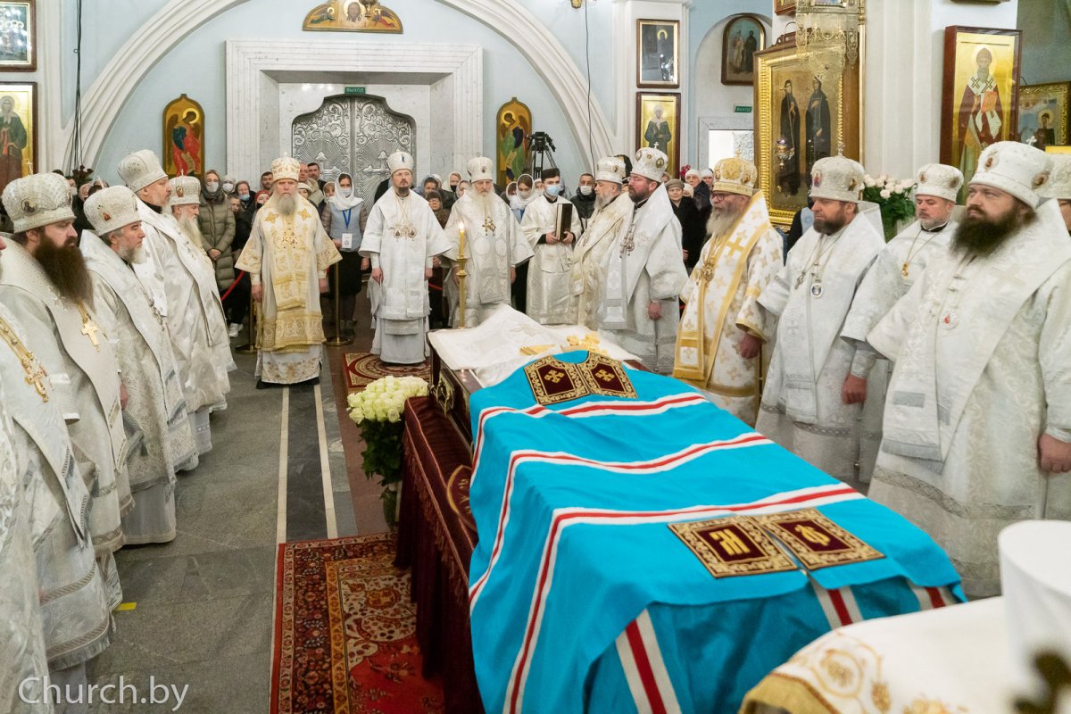Архиереям сослужили: ректор Минской духовной академии архимандрит Сергий (Акимов), племянник почившего митрополита Филарета протоиерей Георгий Вахромеев, духовенство Белорусского Экзархата.