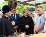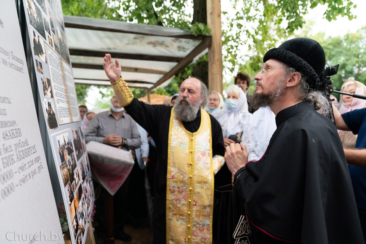 По завершении чина освящения владыка Вениамин обратился к присутствующим со словом назидания. Затем Патриарший Экзарх ознакомился с планом строительства храма и пообщался с прихожанами./ sobor.by/