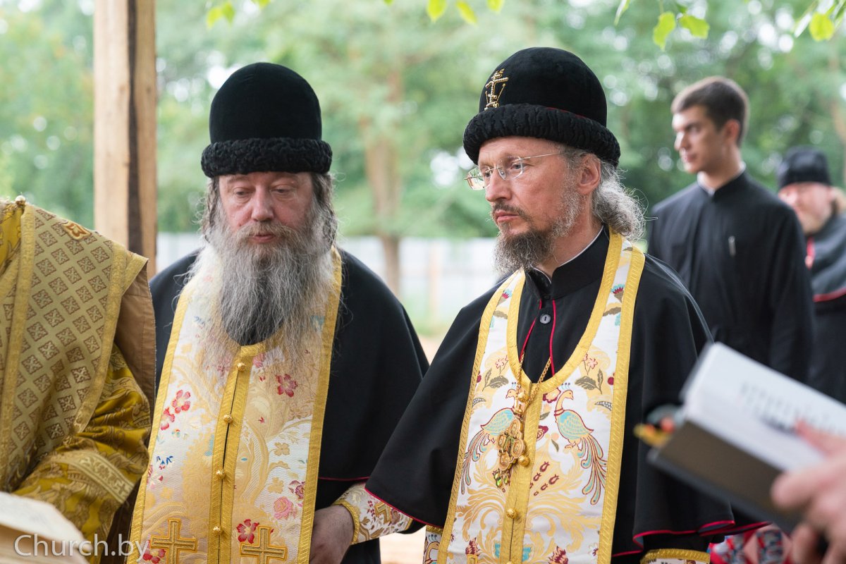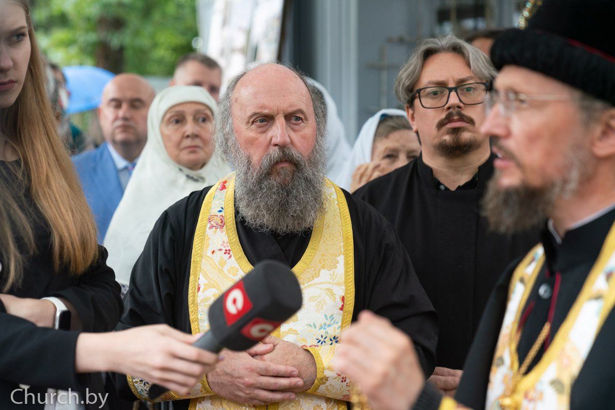 Его Высокопреосвященству сослужили: благочинный 2-го Минского городского округа, настоятель прихода храма иконы Божией Матери "Всех скорбящих Радость" города Минска, председатель Синодального отдела Белорусской Православной Церкви по взаимодействию с казачеством, председатель Синодального отдела Белорусской Православной Церкви по церковному искусству, архитектуре и реставрации протоиерей Игорь Коростелев; настоятель единоверческого храма святителя Николы в Студенцах города Москвы игумен Петр (Васильев); клирик Свято-Духова кафедрального собора города Минска иерей Дионисий Ковалев.