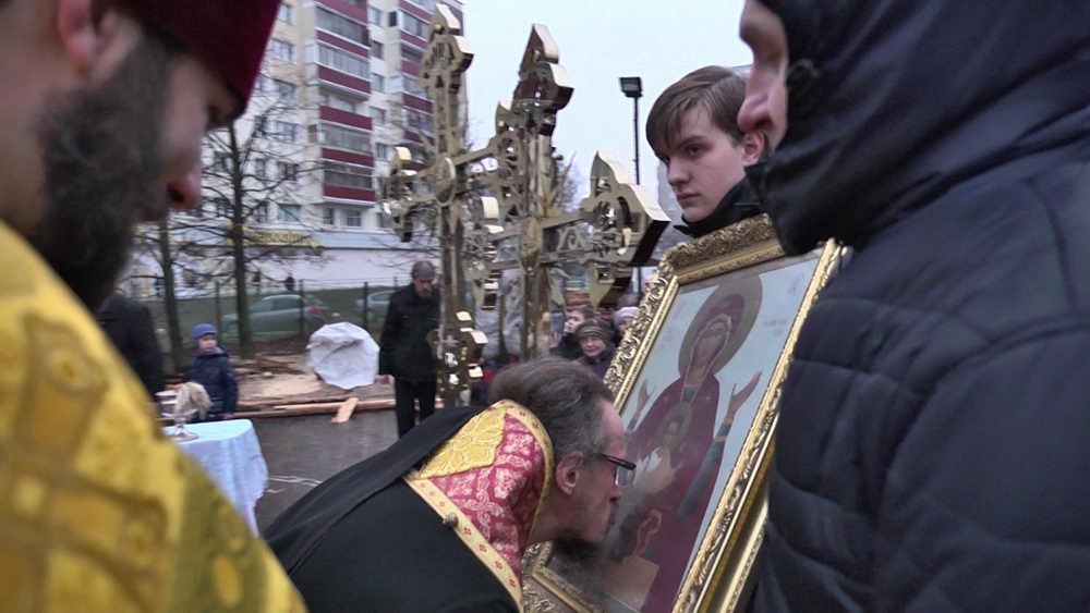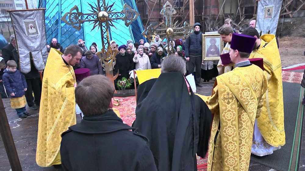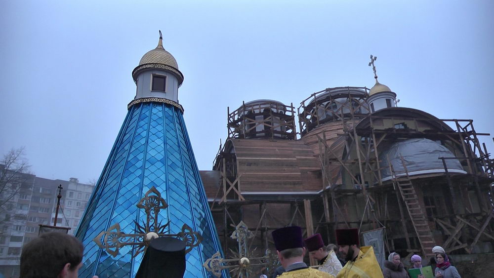 Епископ Борисовский Вениамин освятил кресты и купола для строящегося в Минске храма в честь иконы Божией Матери «Неупиваемая Чаша». Большой шатровый купол весит около 11 тонн и будет в ближайшие дни установлен на храм с помощью самого мощного автокрана в Беларуси.