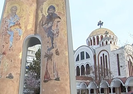 Храм построен как точная копия шедевра византийской архитектуры церкви Богородицы Фара в Константинополе. А константинопольский храм была построена в те времена, когда жили святые братья Кирилл и Мефодий»,- говорит протоиерей Димитриос, клирик храма святых равноапостольных братьев Кирилла и Мефодия в Салониках (Греция).
