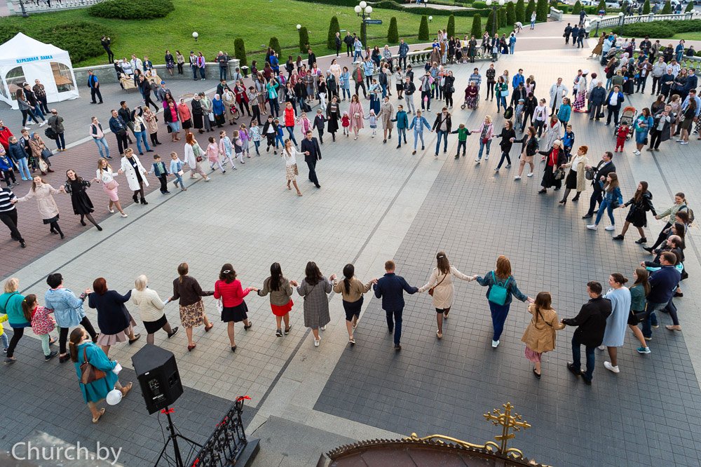 После концерта территория у собора превратилась в танцевальную площадку. В программе — танцы разных эпох, стилей и стран. Участники Минского бала православной молодёжи закружили зрителей в пасхальном хороводе и зарядили всех горожан и гостей столицы праздничным настроением. Организаторы были уверены, что никто не сможет наблюдать за происходящим со стороны. Так оно и получилось – танцевали все.
