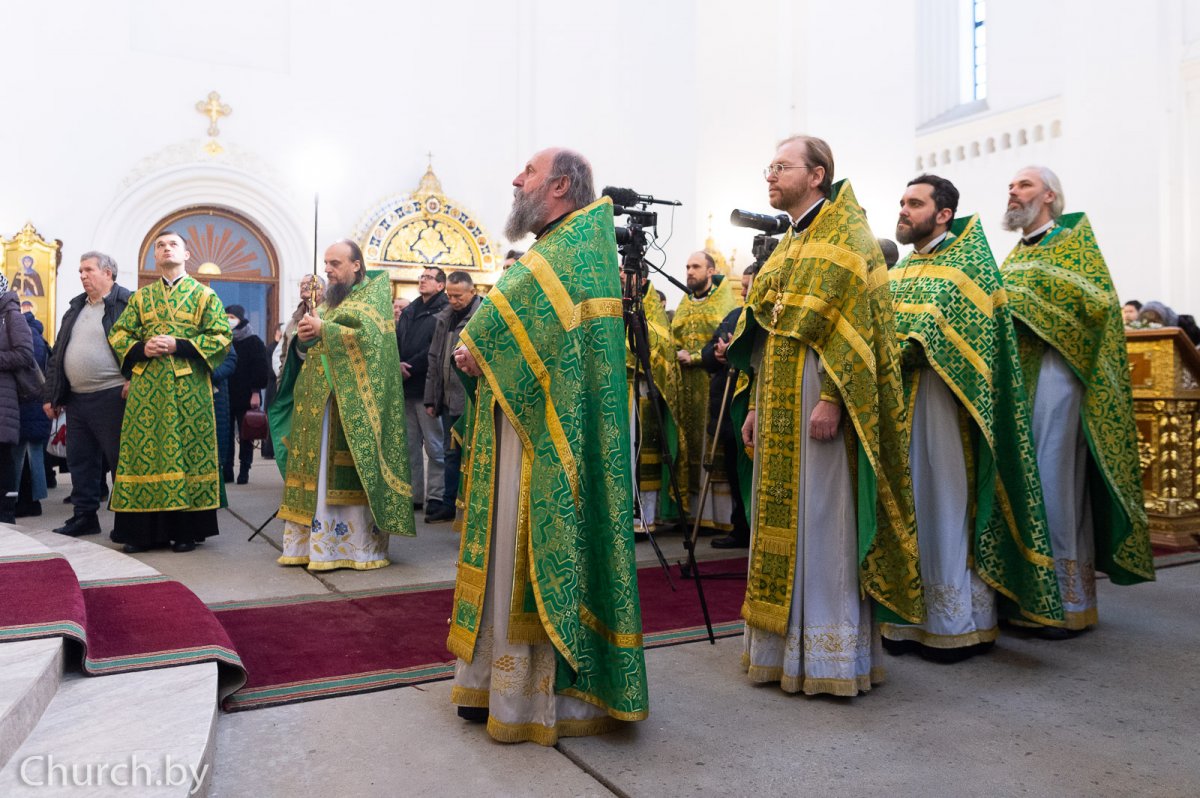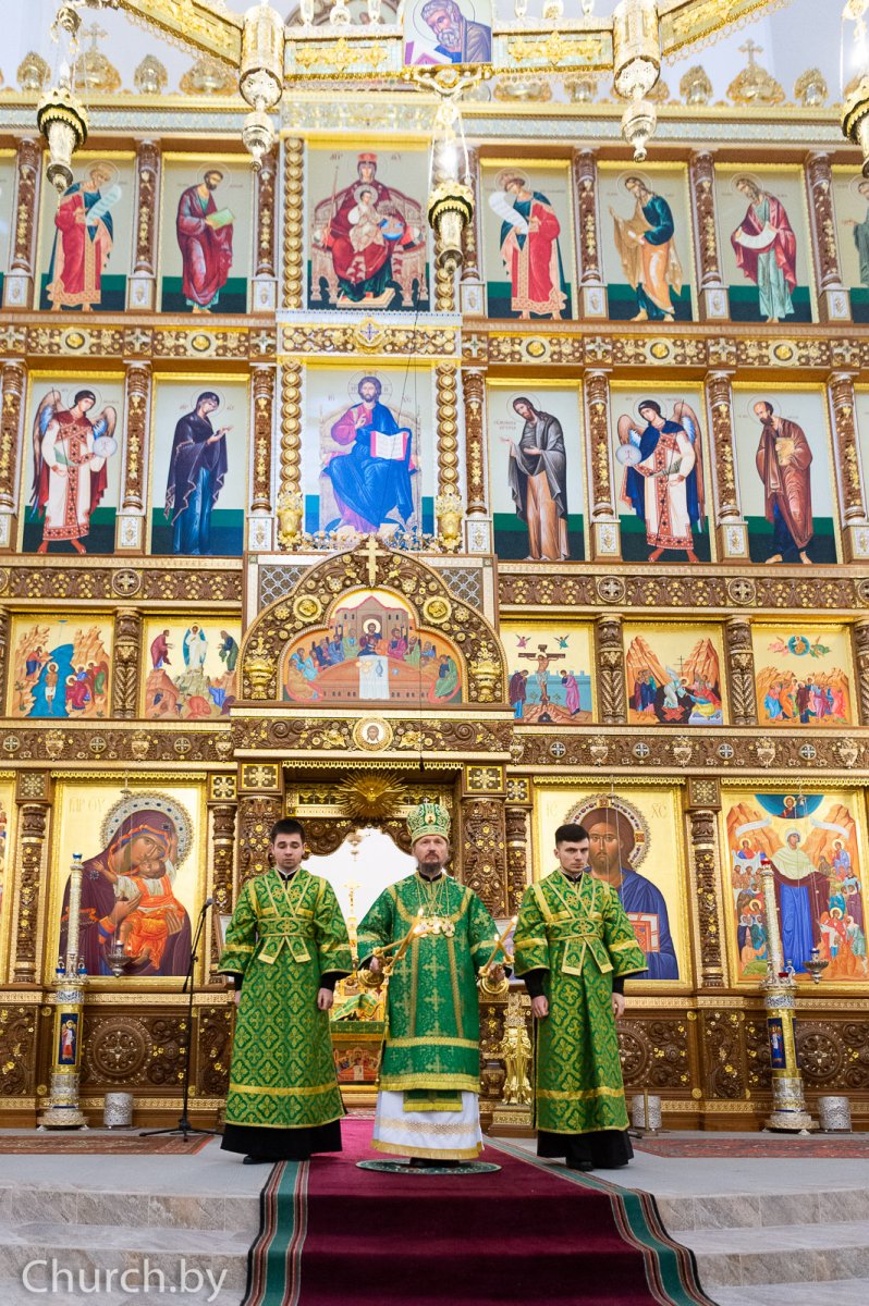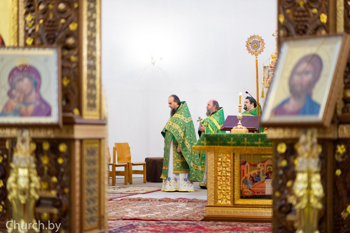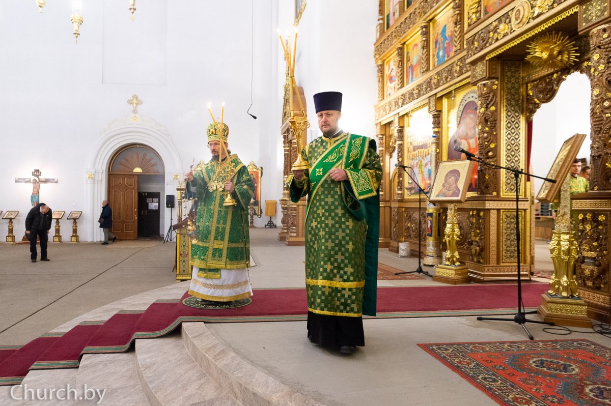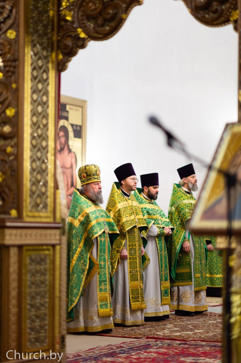 Его Высокопреосвященству сослужили: ректор Минской духовной академии архимандрит Афанасий (Соколов); председатель Синодального отдела БПЦ по взаимодействию с казачеством, председатель Синодального отдела БПЦ по церковному искусству, архитектуре и реставрации, благочинный 2-го Минского городского округа, настоятель прихода храма иконы Божией Матери "Всех скорбящих Радость" города Минска протоиерей Игорь Коростелёв; секретарь Минской епархии протоиерей Андрей Волков; директор Минского духовного училища, настоятель храма Святого Духа поселка Гатово Минского района протоиерей Иоанн Задорожин и приглашённые гости в священном сане.