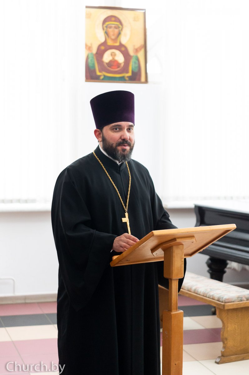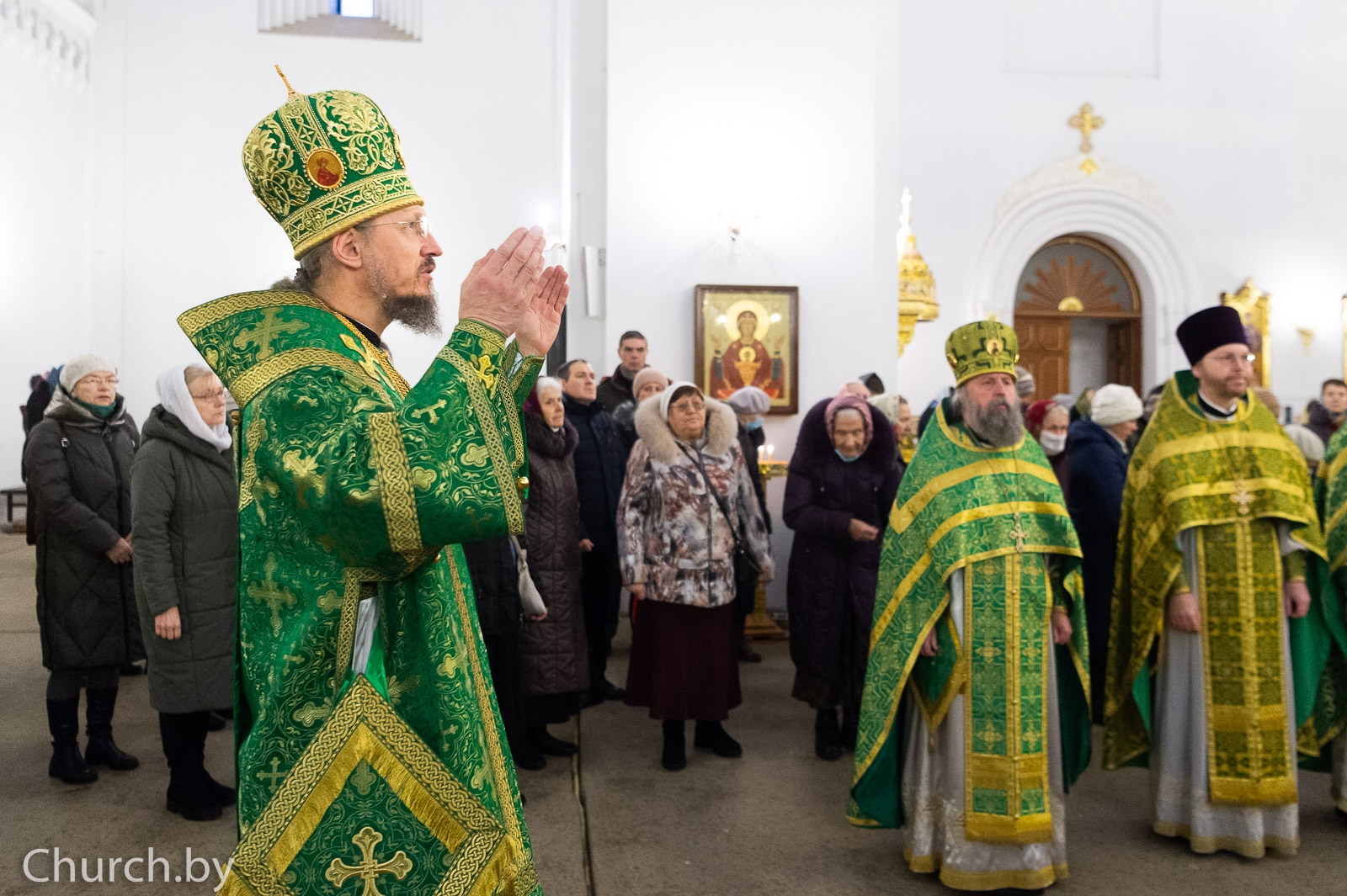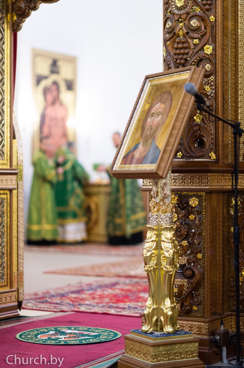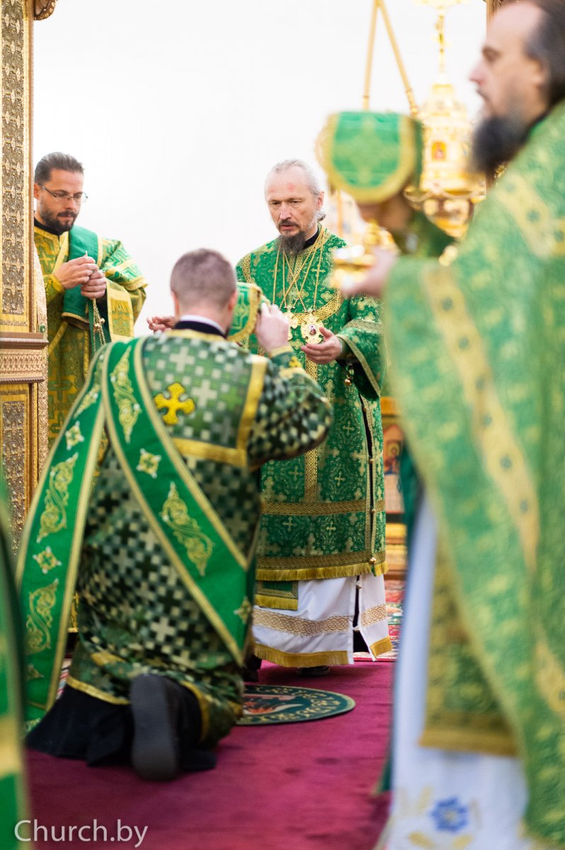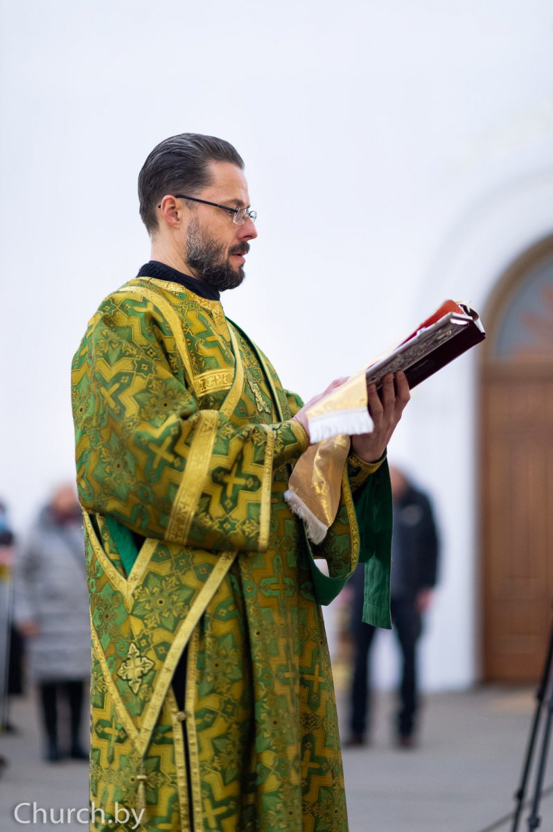 Его Высокопреосвященству сослужили: ректор Минской духовной академии архимандрит Афанасий (Соколов); председатель Синодального отдела БПЦ по взаимодействию с казачеством, председатель Синодального отдела БПЦ по церковному искусству, архитектуре и реставрации, благочинный 2-го Минского городского округа, настоятель прихода храма иконы Божией Матери "Всех скорбящих Радость" города Минска протоиерей Игорь Коростелёв; секретарь Минской епархии протоиерей Андрей Волков; директор Минского духовного училища, настоятель храма Святого Духа поселка Гатово Минского района протоиерей Иоанн Задорожин и приглашённые гости в священном сане.