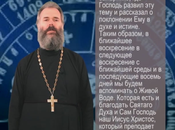 Таким образом, с ближайшей среды и в последующие восемь дней мы будем вспоминать о Живой Воде, Которая есть и благодать Святаго Духа и Сам Господь наш Иисус Христос, который преподаёт нам эту благодать.