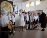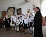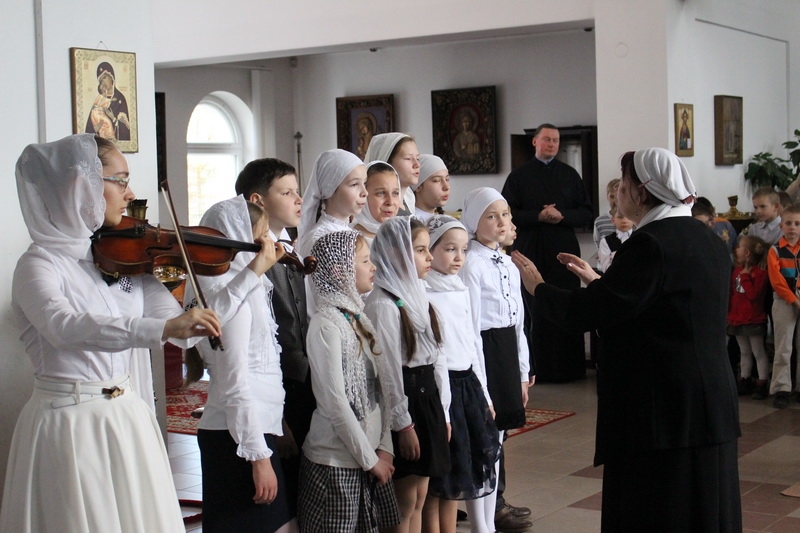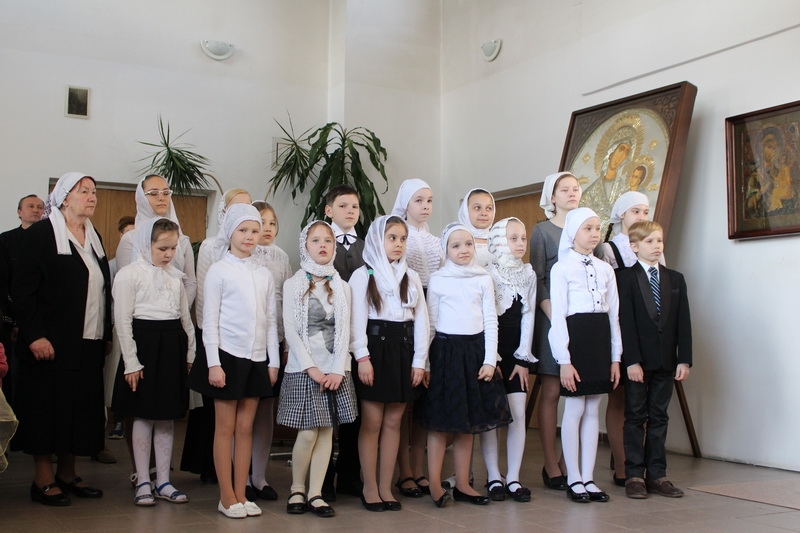 Младший хор воскресной школы выступил под управлением одного из старейших преподавателей школы - Аллы Ивановны Сухановой. К слову, накануне ребята приняли участие в фестивале детско-юношеских хоровых коллективов воскресных школ Минска, который прошёл в столичном Доме Москвы.