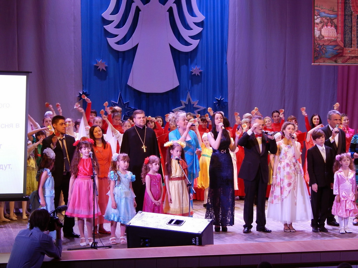 Концерт прошёл в рамках областного благотворительного марафона «Крылья ангела» в Доме культуры Слуцка, 22 мая. Состоялся он по благословению епископа Слуцкого и Солигорского Антония и был приурочен к 1000-летию преставления святого равноапостольного князя Владимира и к 70-летию Победы в Великой Отечественной войне. Организаторы: отдел образования, спорта и туризма Слуцкого райисполкома совместно со Слуцкой епархией.