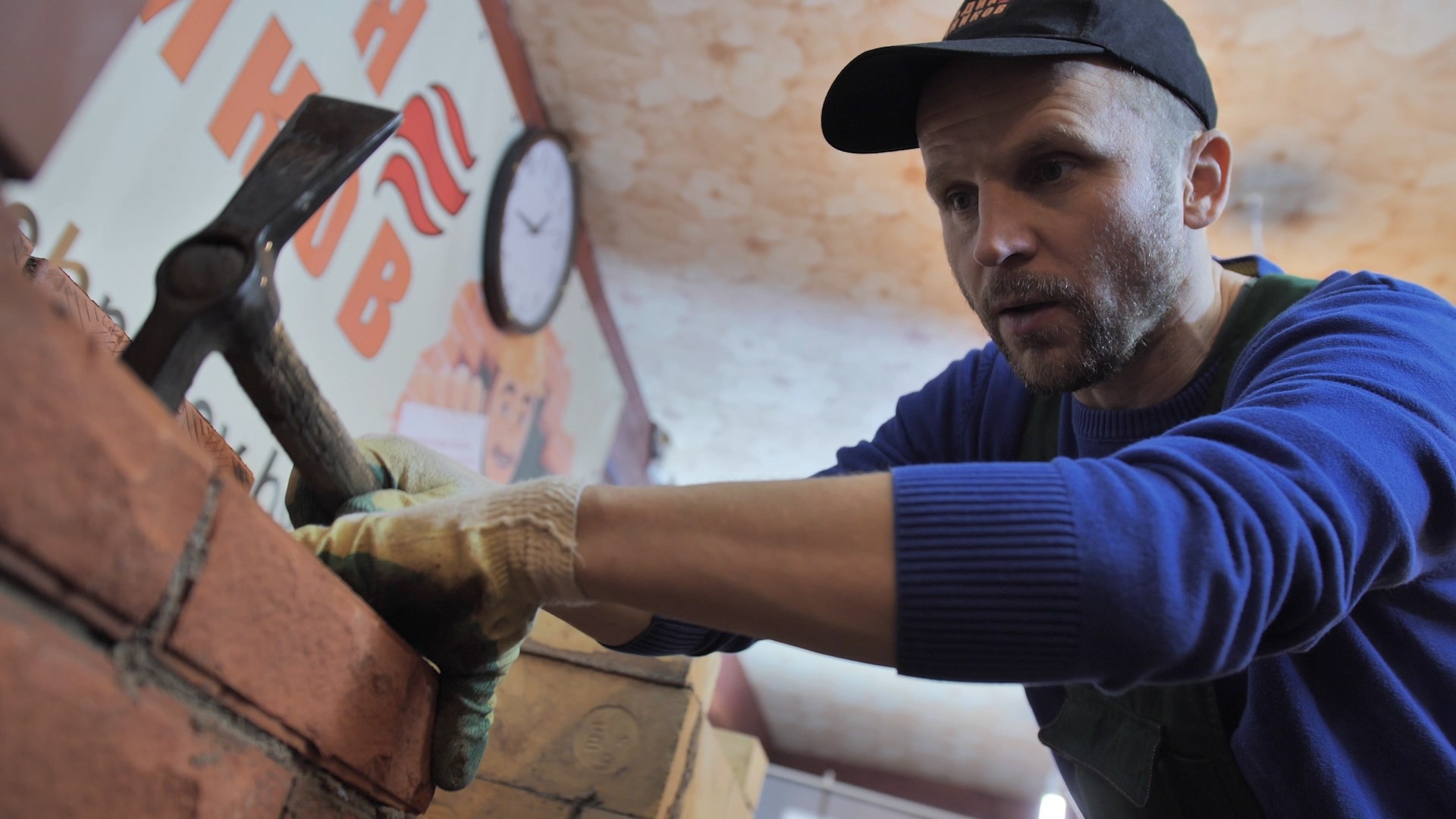 Илья Русеев, печник, г. Минск:"Четыре года назад силами артели "Огниво" здесь была сложена эта печь. В дальнейшем она была отделана".