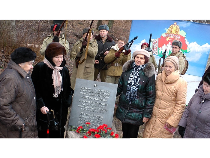 25 февраля в деревне Сёмково Минского района состоялось торжественное открытие мемориальной доски в память о подвиге партизан бригады «Штурмовая», которые в феврале 1944 провели беспрецедентную в истории партизанской войны операцию по спасению 274 воспитанников сёмковской школы-интерната. Разместившиеся в здании интерната захватчики брали детскую кровь для раненых солдат, проводили бесчеловечные опыты.