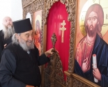 Катапетасму, завесу над царскими вратами украсил вышитый крест, который символизирует святость Белой Руси - крест преподобной Евфросинии, игуменьи Полоцкой. Старец высоко оценил эту работу белорусской мастерицы Татьяны Зущик из Радосте-Скорбященского прихода Минска.