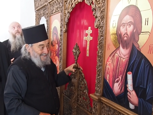Уже после полной установки иконостаса и наведения порядка после работ, церковь святого апостола и евангелиста Иоанна Богослова осмотрел игумен обители Святых Архангелов, так ещё называют Дохиар, архимандрит Григорий, один из самых уважаемых афонских старцев. Многие знают особенности отца Григория, который своё благословение может выразить и пощёчиной, но сейчас геронда повёл себя неожиданно: